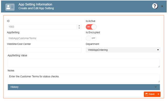 3. Look for WebAppCustomerTerms app setting