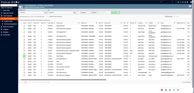 4. You can either select an existing event or create a new one by clicking on New Entry: