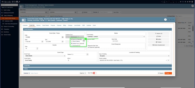 5. Once you have created the event, go to the Event Info tab. In this tab, you will find the Calendar Sync drop-down menu, which contains four different options, as shown in the image below: