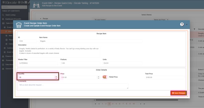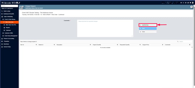 Before completing a change request, you need to create an event, add items from the different departments (Recipe, Beverage, Equipment and Staff), submit the department, when a department is submitted the app automatically locked the department preventing unauthorized changes, however if a change needs to be made, the Sales team needs to follow these steps to start a change request: