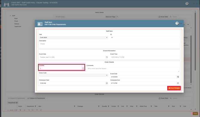 When adding staff items, you´ll have the option to edit the quantity for the chosen staff item: