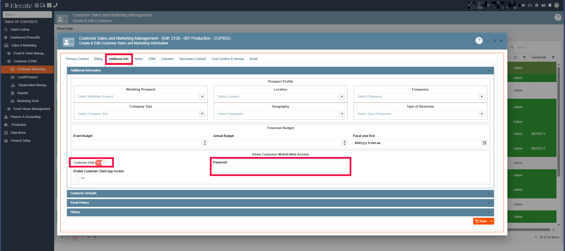 6. Go to the Additional Info Tab and turn ON the Customer Web toggle