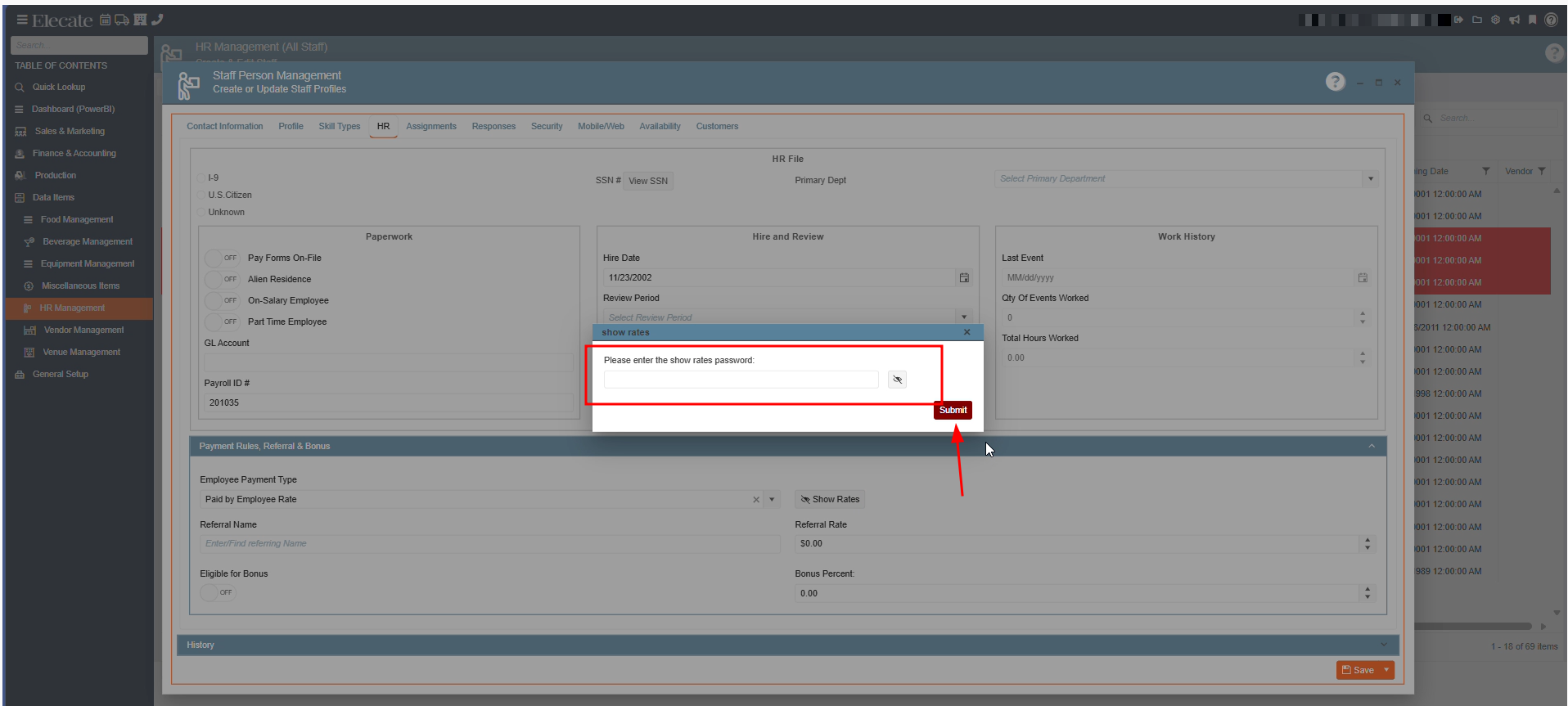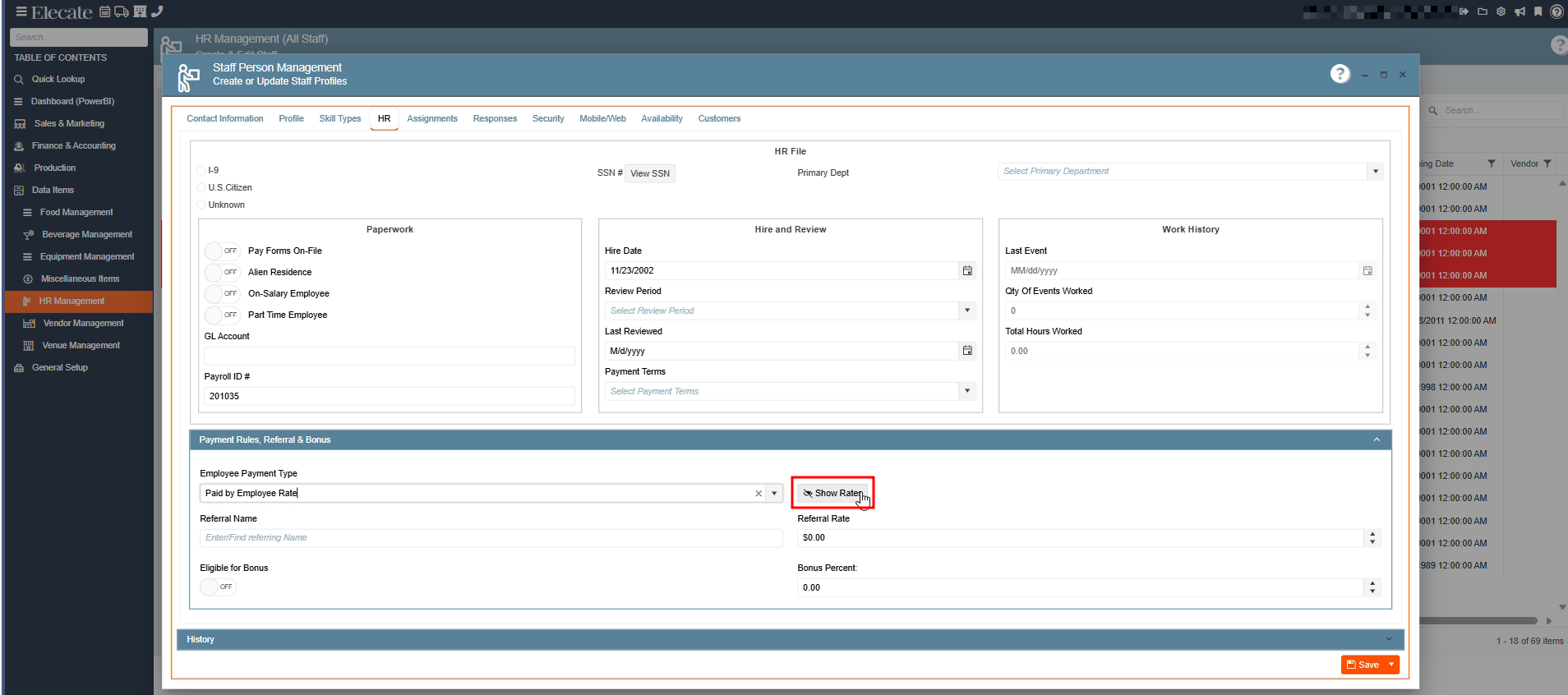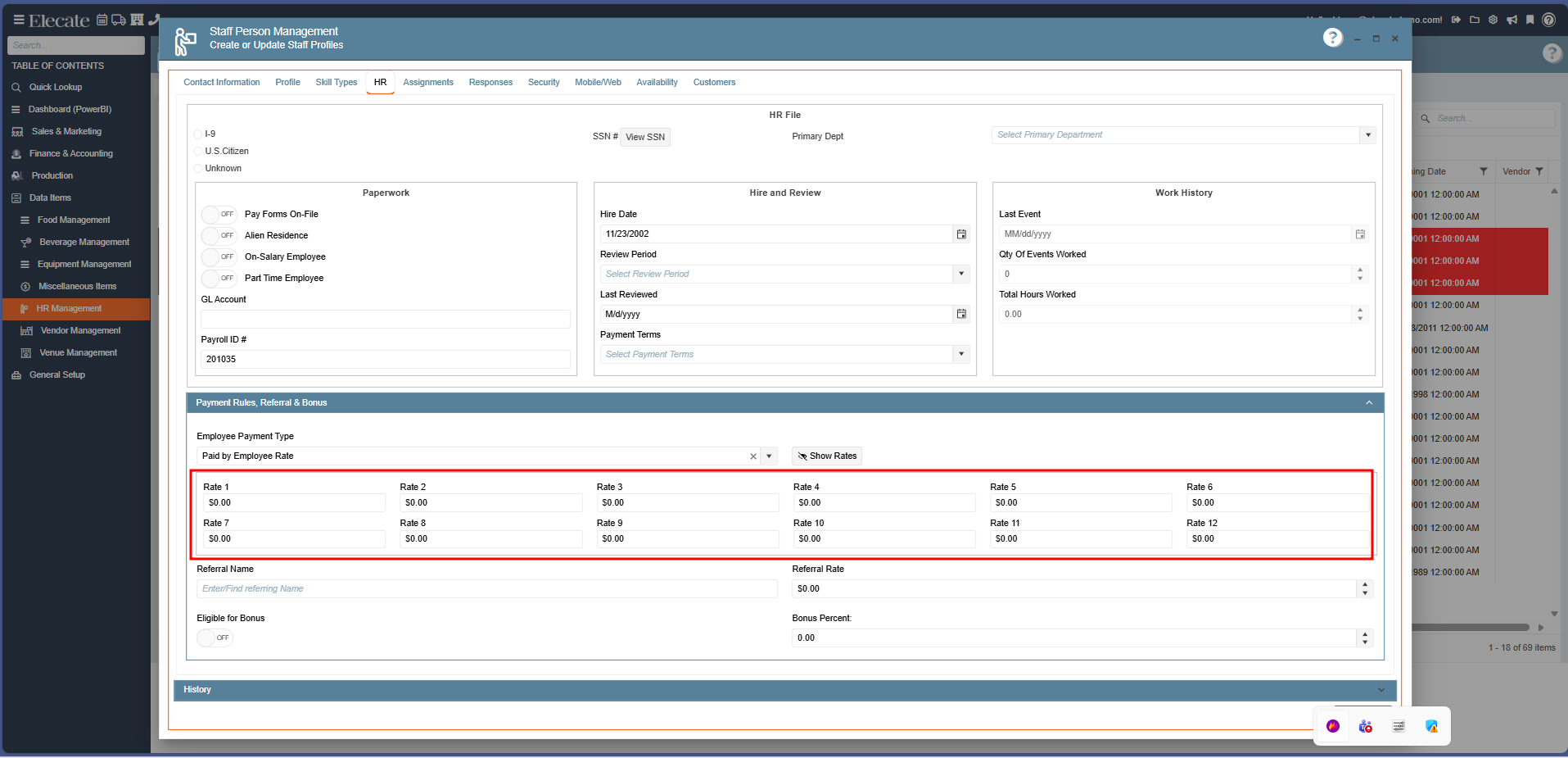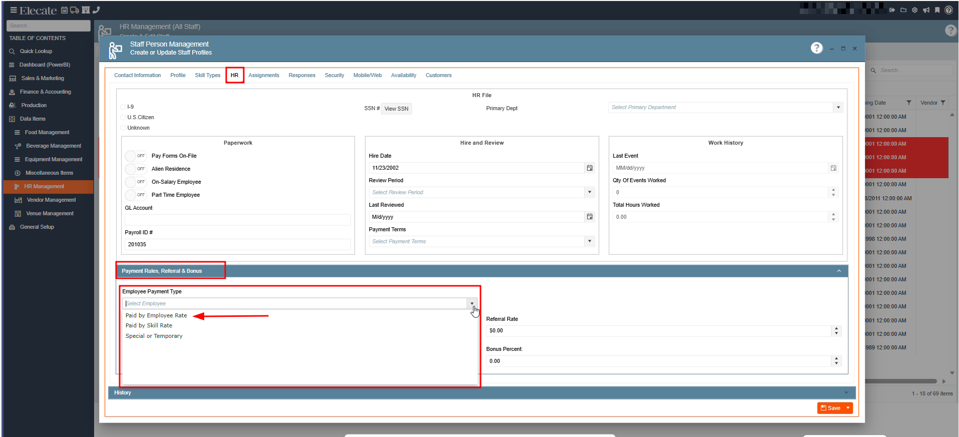 5. Once you have created a new staff member or opened an existing record, next go to the HR Tab, click on the Payment Rules Referral & Bonus section:
