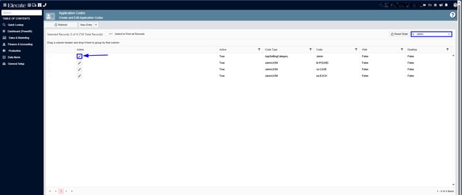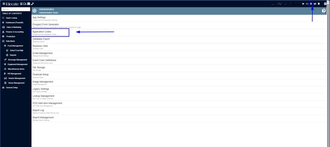 2. Click on Application Codes