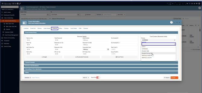 6. Go to the Financial Tab, in the Cost Centers section choose the Receiving and Home fields, the Jamix´s Locations: