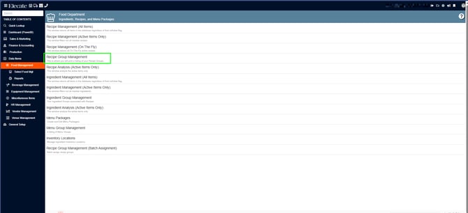 3. Select Recipe Group Management