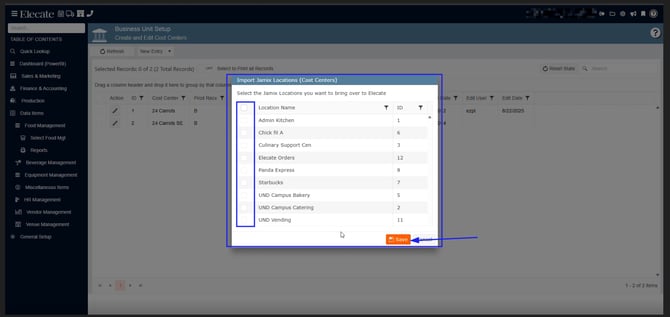 5. Click Import Locations. A window will appear where you can select the locations you want to import, then click Saves (Note: If a location name exceeds the maximum length, only the first 20 characters will be imported)