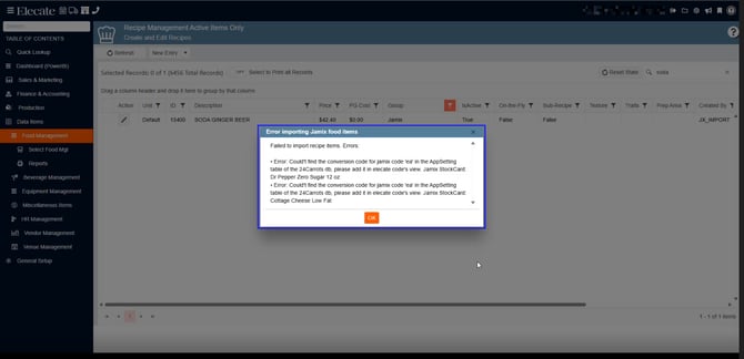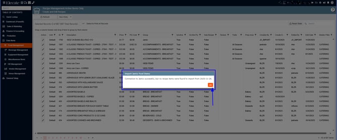 6. Once the synchronization is completed, you will see the following message, the warning message will let you know if recipes were found or not