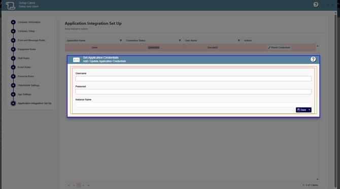 4. Click on Reset Credentials, you will have to enter the Businesses Username, Password and Instance Name, you can find this information in the URL provided by Jamix, example: https://usa.jami.cloud/apps/instancename/app/, you just need to copy the information from the URL.