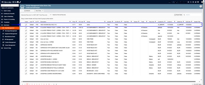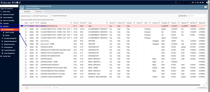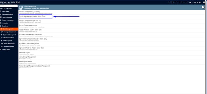3. Select Recipe Management (Active Items Only)