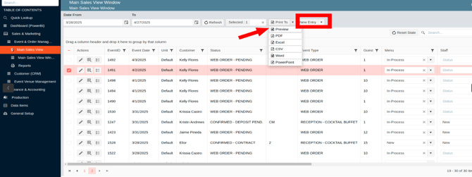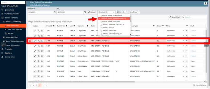 In Production: The event is already being worked on by the corresponding department (kitchen, staff, and operations).