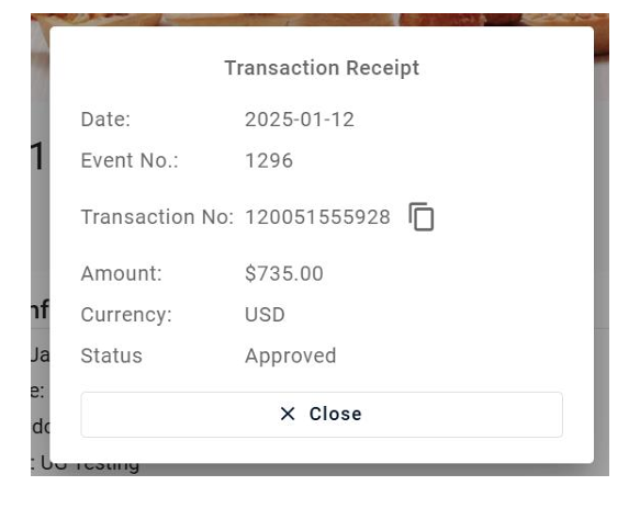 After processing the payment, you will get a transaction receipt: