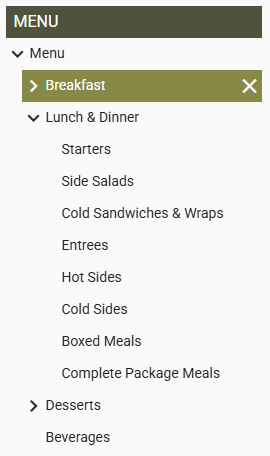 Sub‑category hierarchy (e.g., Starters → Entrees → Sides).
