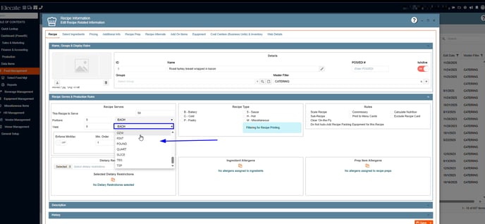 The three fields mentioned above are critical. All food cost calculations and system processes, such as purchase orders, billing, and invoicing depend on the accuracy of recipe yield figures. Please ensure precision and test any recipes you’re unsure about. The system also allows you to edit recipes later to correct and maintain accuracy