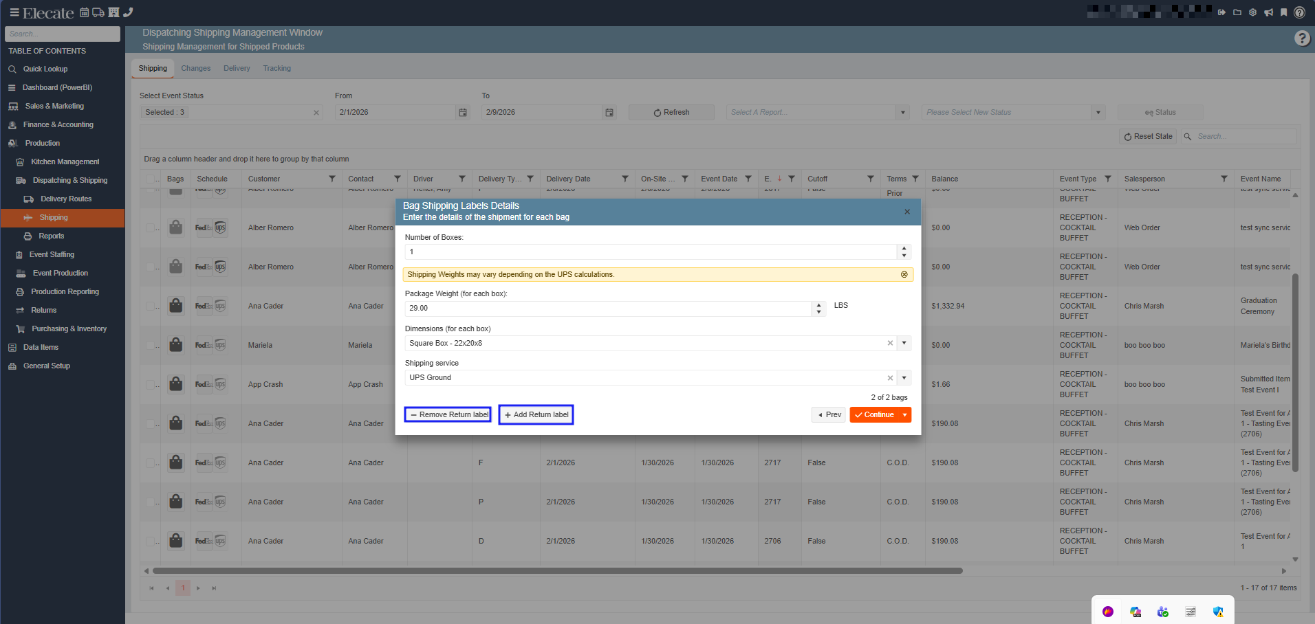 4. Fill out the required information, pick an event, enter the number of bags, click on Save & Close, in the following screen you will see new buttons created: