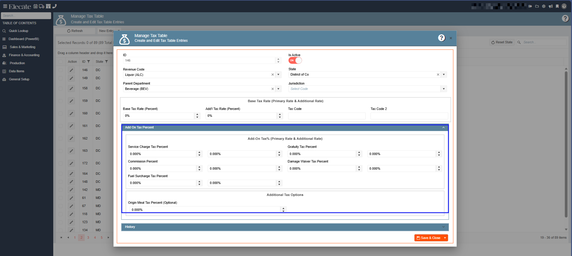 - The section called Add-On Tax (Primary Rate and Additional Rate) must have all the fields within the ability to have up to 3 digits after the dot.