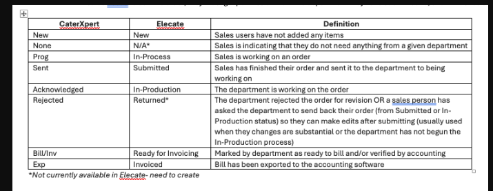 - In - Production: Culinary users start working on the event; sales cannot make changes.