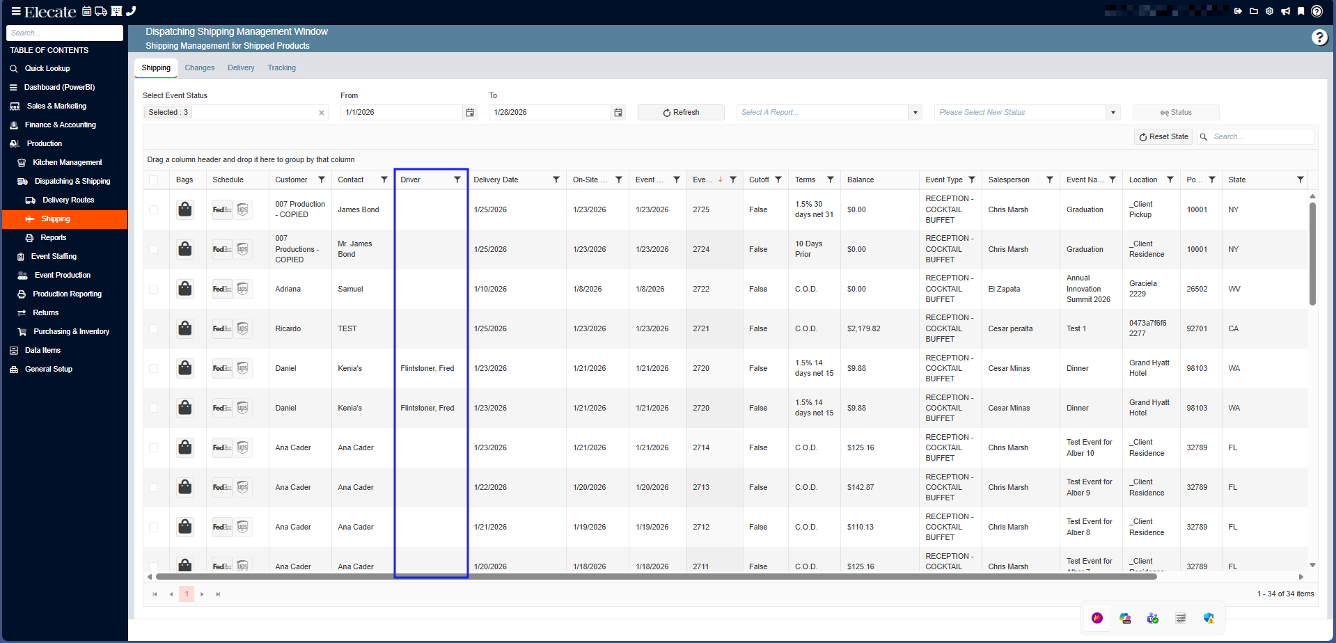 1. Wanting to see a Driver Column in the Dispatch Shipping Management Window: