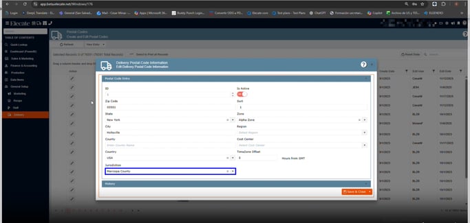 3. Select Create and Edit Postal Codes, once you open an existing record, you will be able to see the Jurisdiction field