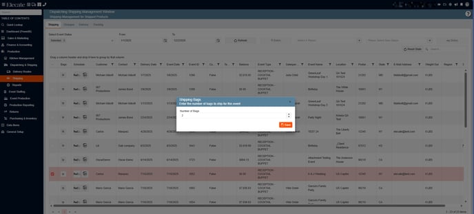 - Click this button to set the number of bags that will appear on the shipping label window.