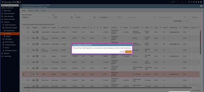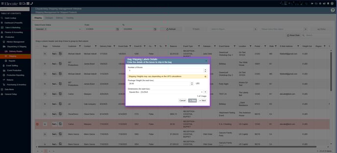 - Meaning if the user set up 10 bags on the bag column, then as soon as the user clicks on the shipping label. Then they need to see (1 of 10)