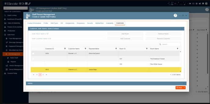 - On the Staff HR Management window, on the customer tab, you need to have the ability to also look for "Venues" and allow the staff member to be associated with the venue instead of only customers.
