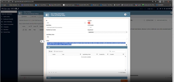 - Create the appSetting " UsePostalCodeForTaxJurisdiction"