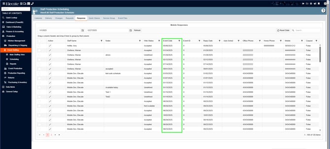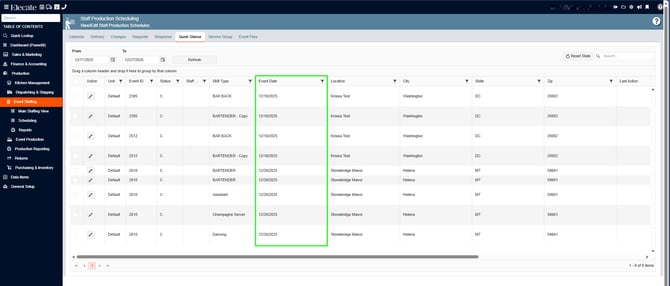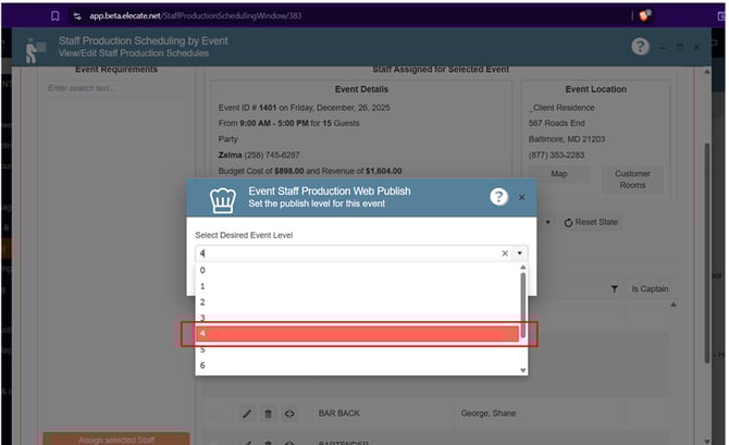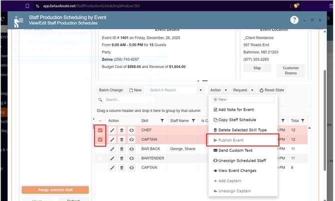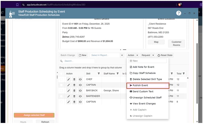 4. Staff Production Scheduling: The Publish Event action is working properly: