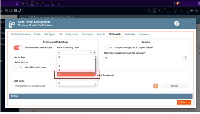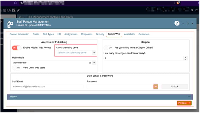 3. Staff Person Management: The Auto Scheduling Level field has been added: