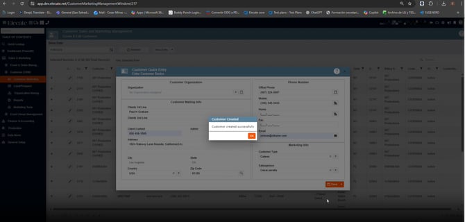 5. Needing the Addition of a Confirmation message for the Creation of customers with the Quick Add function: