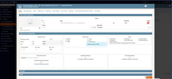 5. Review the serving in the Recipe Tab, next go to the Recipe Prep Tab, you can either modify an existing data or create a new one by clicking on New