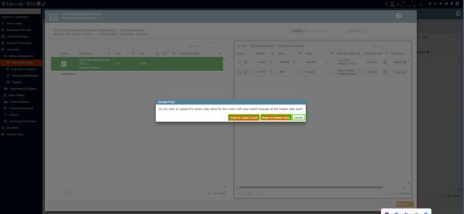- Text: Do you want to scale the recipe prep at the guest count level or reset it to the master data level?