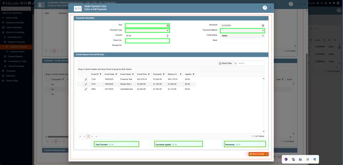3. Fit-n-finish to the Multiple Payment from the Event Window's Financial Tab: