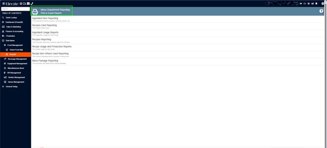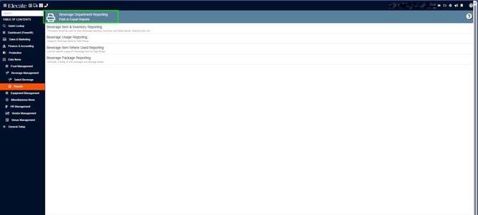 5. Requesting to the DB team to hide Non-Report Options from Beverage Reports Menu: