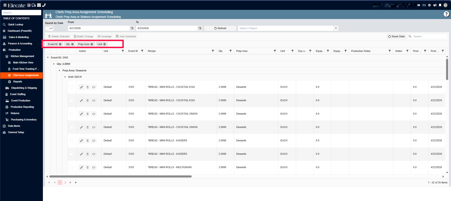 2. Having Grid Persistence in the Chefs Prep Area Assignment Scheduling window: