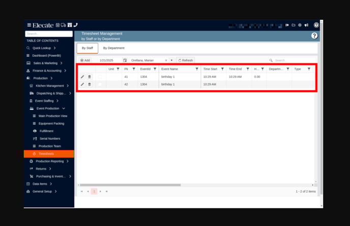 It was synchronized the staff schedule availability and delete action intime sheets, it was updated the synchronization for event attachments, changed IDs value in Staff Skills, verified/changed staff assignment ID when a staff is added to the event, tested entities synchronization with the Mobile DEV team.