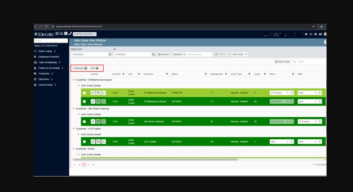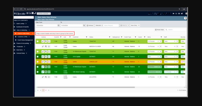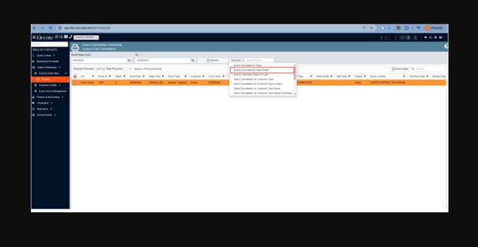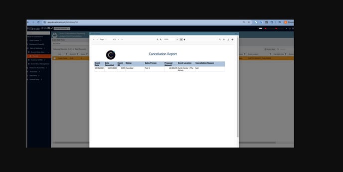 A report detailing the cancellation reason was created, the columns included were the following: Event Date, Date cancelled (date the status was changed to any cancelled 'X' status), Event ID, Salesperson, Proposal Amount, Event Location, Cancellation Reason (which is populated by the user by typing in the box below when changing the status to cancelled).
