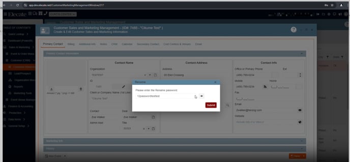 In the client administration window, under the Additional Information tab, you can enable or disable the client's Web switch based on the application configuration. If the Web switch is enabled and no password is entered during user creation, a pop-up will prompt the user to set a custom password upon saving the registration. The CustID will be used as the password, and the email from the main contact tab will be recorded for the legacy shopping cart.