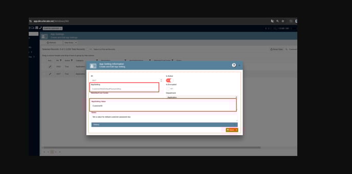 4. In the search bar type in CustomerWebDefaultPasswordKey