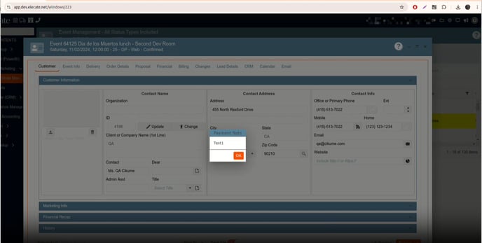 13. Refining the conditions to show the Additional Contact Details pop-up message in the Customer Management Window: