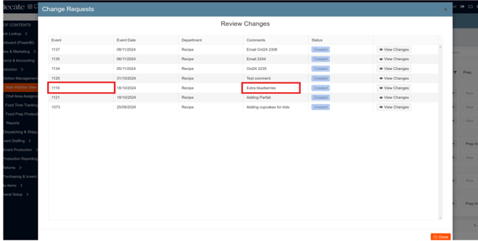 4. Navigate to the change request column and click All Change Requests