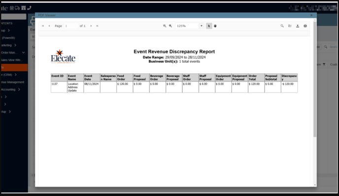 - Discrepancy Field: Calculated as the Event Estimate Screen Subtotal minus the Order Screen Total. Negative values will appear in parentheses.