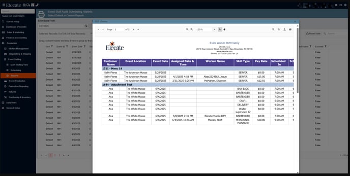 4. Choose Event Staff Audit Scheduling Reports