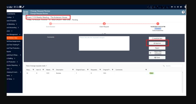 Change request waiting for approval in the Empower App: