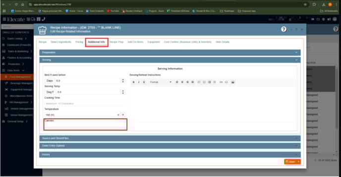 - The calories field has been moved to the Additional Info tab, under the Serving Info section