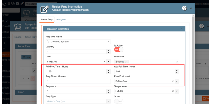 The Prep Item Date is set based on the number of days specified in the 'PreparationLeadTime' app setting value prior to the event date, additionally users can edit and save the Prep Item Date.