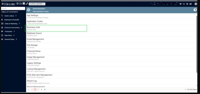 2. Moving the Business unit option from the General Set Up option to the left side menu under the Gear wheel: