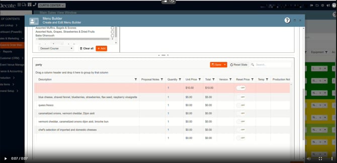 Adding Items that belong to the Food revenue group in the Proposal Tab: