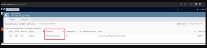 10. Creating a new App Setting for Requiring Production Notes when Editing Item Name or Description: