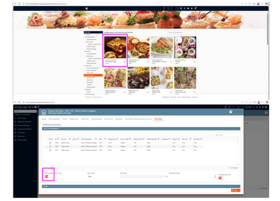 - When the toggle is on the item will be visible in the shopping cart